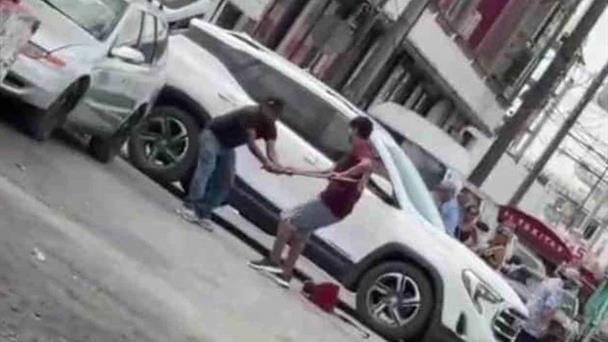 Riña en pleno Centro de Nuevo Progreso, fue captada por usuarios de redes sociales.
