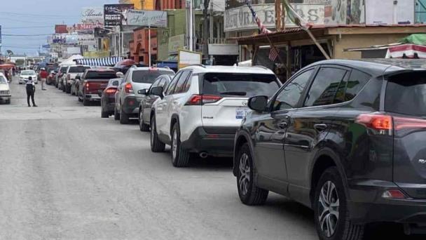 Es sobre la avenida principal licenciado Benito Juárez, en un tramo de ocho a jueves cuadras, fácilmente, en donde se forman las largas hileras de carros, lo mismo americanos como también mexicanos.