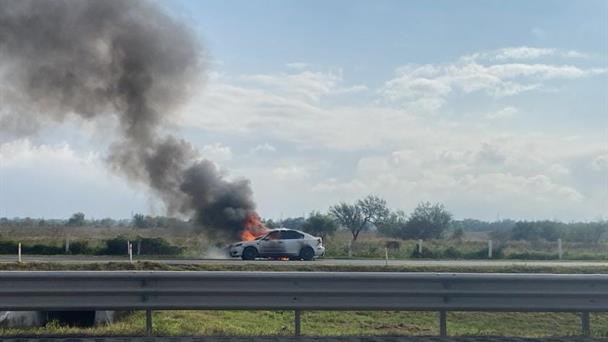 Fuego consume vehículo en la autopista Matamoros-Reynosa