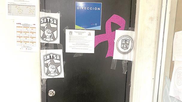 Permanece cerrada oficina principal en el Centro de Salud Río Bravo, luego de que se aplicaran los sellos en la puerta de acceso por parte de empleados del Sindicato Nacional de Trabajadores de la Secretaria de Salud Sección 51, en demanda de una serie de peticiones laborales que no les han atendido.