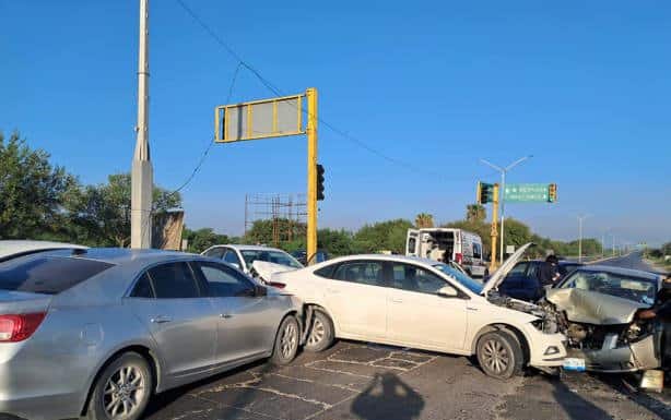 Un brutal choque de cuatro vehículos tuvo lugar la mañana de este viernes en el libramiento de tráfico pesado, específicamente en la intersección con la calle Colegio Militar, en la colonia Primero de Mayo. El incidente se registró minutos después de las 8:00 horas, provocando conmoción entre los testigos que presenciaron el accidente.