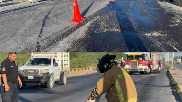 La mañana de viernes, personal de Protección Civil y Bomberos atendieron un derrame de aceite sobre el libramiento licenciado Juan Antonio Guajardo Anzaldúa.