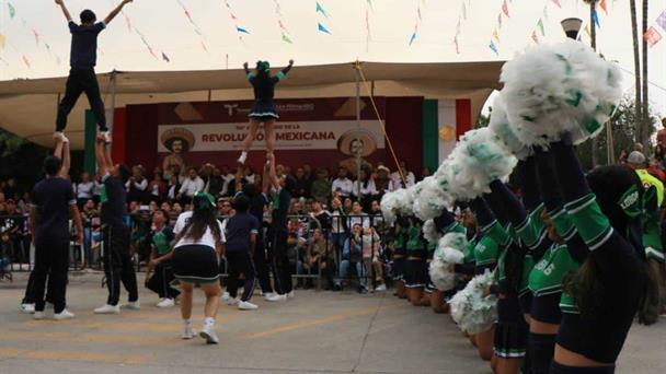 Este magno evento contará con la participación de 1,400 alumnos de 10 instituciones educativas de nivel básico y medio superior y universidad, quienes, con sus atuendos típicos, realizando tablas rítmicas, cuadros alegóricos y números representativos de la Revolución, darán realce y significado e histórico a esta fecha emblemática.
