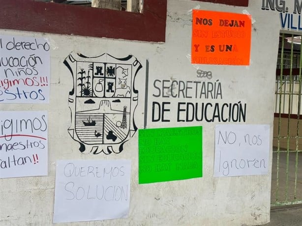 "No nos ignoren", "nos dejan sin estudio y es una obligación (oficial)", "Sin maestros no hay educación, sin educación no hay nada", "Queremos solución", "exigimos los maestros que faltan", "urge!! necesitamos maestros" y otras más, eran las consignas que los inconformes mostraban en pancartas que portaban en sus manos o que plasmaron en las paredes de la entrada del plantel.