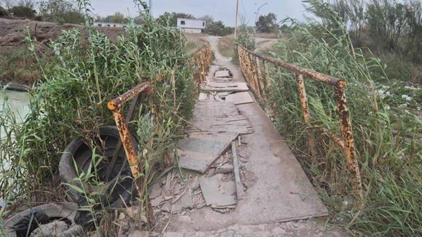 Cada paso es una apuesta. Cada cruce, un acto de valentía forzada, entre tablas podridas decenas de familias de Misiones del Puente utilizan el puente que atraviesa el dren Río Bravo y conecta al fraccionamiento Misiones del Puente con la colonia Niños Héroes.