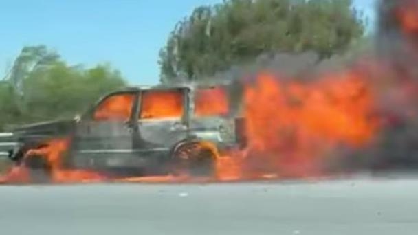Incendio de vehículo se suscitó poco después del mediodía de este martes en puente Río Bravo-Donna.