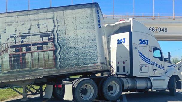 Operador de tractocamión quedó varado y obstruyendo el tráfico vehicular en rúa federal en incidente que tuvo lugar alrededor de las 13:30 horas en la autopista Matamoros-Reynosa.