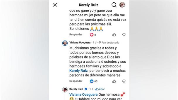 "Hola Karely Ruiz, sé que es una lipo la que regalas, pero si llego a ganar te la cambiaría solo por un implante de seno, ya que el por el cáncer de mama he perdido mi seno derecho, que Dios te bendiga y multiplique todo lo que haces, bendiciones", fue el clamor que hizo la paciente.