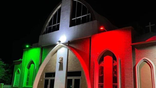 La parroquia San Juan de los Lagos se une a las celebraciones patrias con luces de la Bandera Nacional