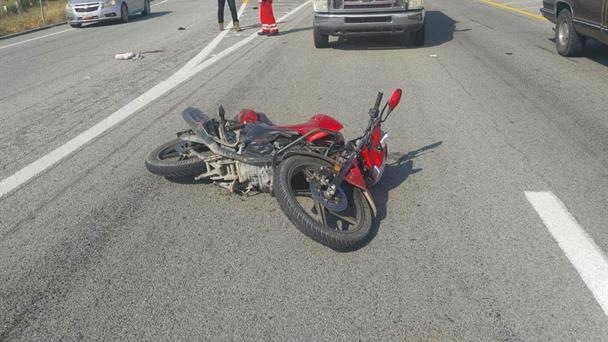 Joven derrapa y cae de moto; sufre traumatismo craneal