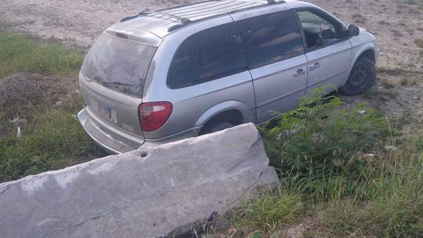 Como resultado, la unidad de color gris y con matrículas del Estado de Texas, se precipitó fuera de la cinta asfáltica, pero antes de caer al dren, derribó una estructura de concreto y varilla, sostén de una alcantarilla de riego.