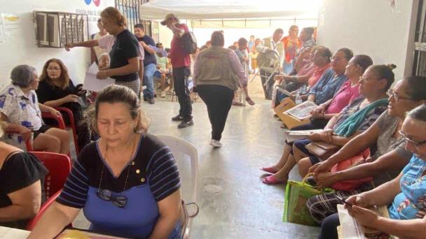 Con una fuerte demanda, y largas filas, se desarrolla el programa Pensión Mujeres Bienestar de 60 a 64 años, en el Municipio, Nuevo Progreso, Santa Apolonia, y Cándido Aguilar.