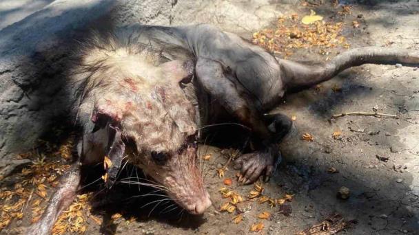 Marsupial que portaba a sus crías fue agredido el cruce de las avenidas México y Sonora la tarde del jueves, fue rescatado por Protección Civil