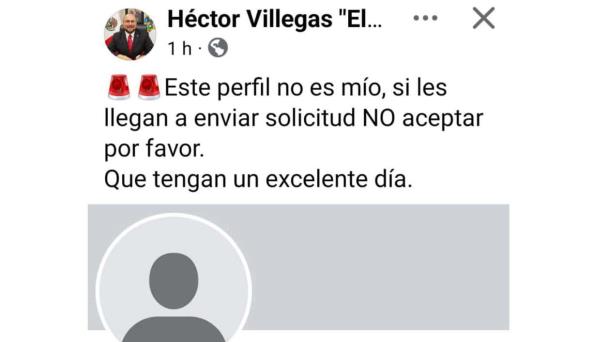 “Este perfil no es mío, si les llegan a enviar solicitud NO aceptar por favor. Que tengan un excelente día”, fue el breve mensaje que publicó desde su página el funcionario estatal.