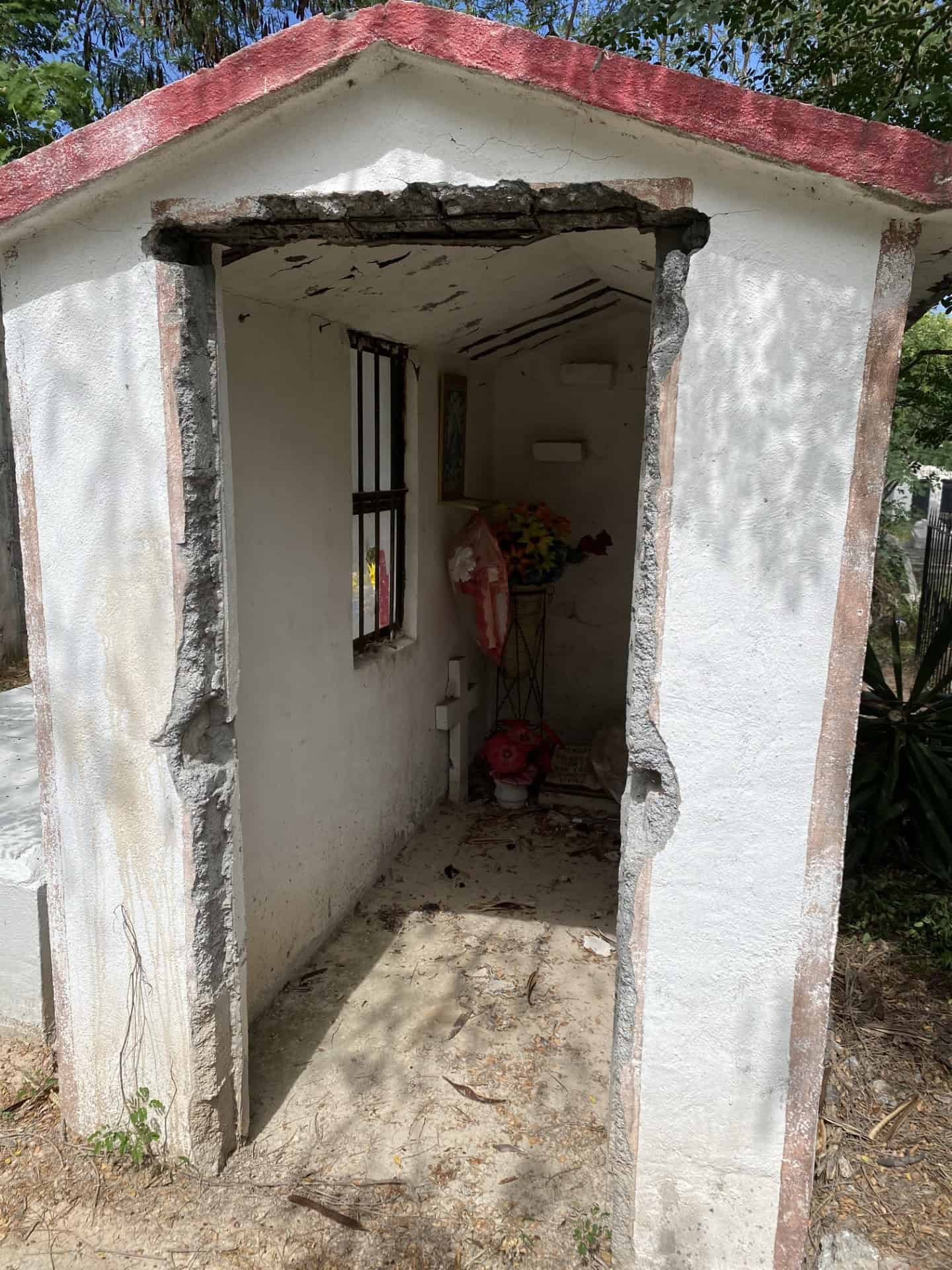 En otros casos, afortunadamente, alcanzan a percatarse y toman cartas en el asunto, como le pasó a una persona que, al acudir a visitar la tumba, se percató de que ya habían comenzado a desprender parte del marco de concreto para retirar la puerta de fierro.