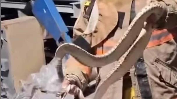 En operativo coordinado entre el ecologista Jesús Elías Ibarra Rodríguez y personal de Protección Civil de Río Bravo, se localizó una víbora de cascabel al interior de una fábrica ubicada en esta ciudad.