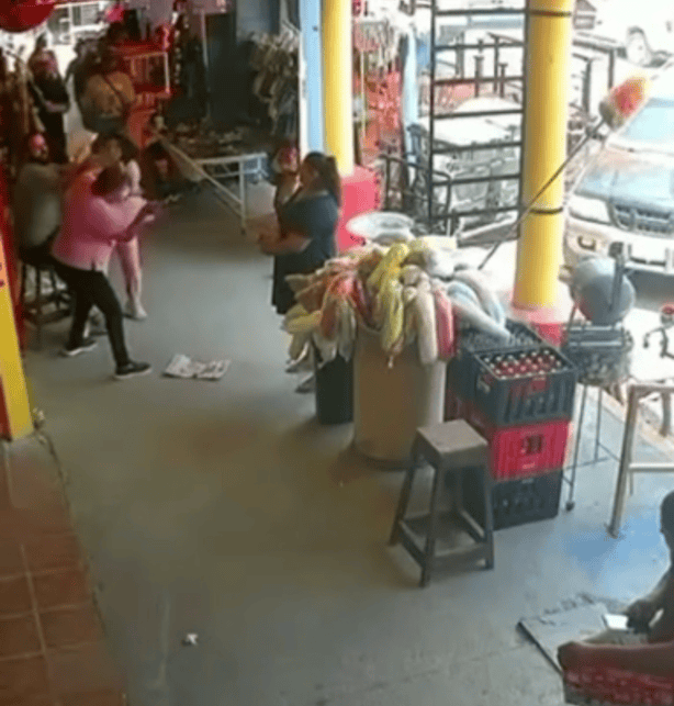 Altercado a golpes entre dos mujeres, quedó registrado en un vídeo de circuito cerrado de seguridad privada