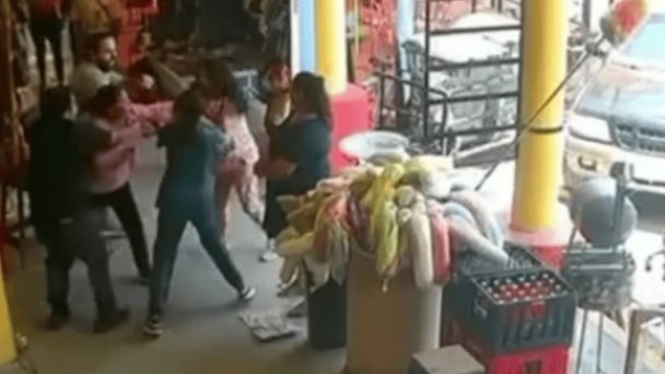 El altercado a golpes entre dos mujeres, quedó registrado en un vídeo de circuito cerrado de seguridad privada.