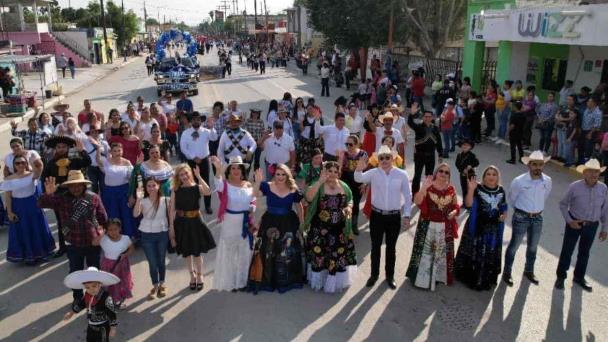 El desfile comenzó con la comitiva del Cabildo, funcionarios municipales, encabezados por la ing. Maybella, contando además con la grata compañía de la legisladora local Marina Ramírez Andrade, en una mexicanísima expresión de vestuarios de la época, sombreros y otros atuendos, que desfiló hasta el palco sobre la misma calle Cortines frente a la refaccionaria “Marcos”.