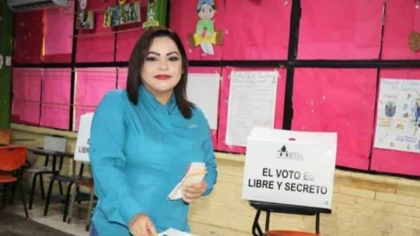 Verónica Aguirre acudió este domingo, alrededor de la 13:00 horas, a emitir su voto en la casilla ubicada en la escuela ‘Juana de Asbaje’