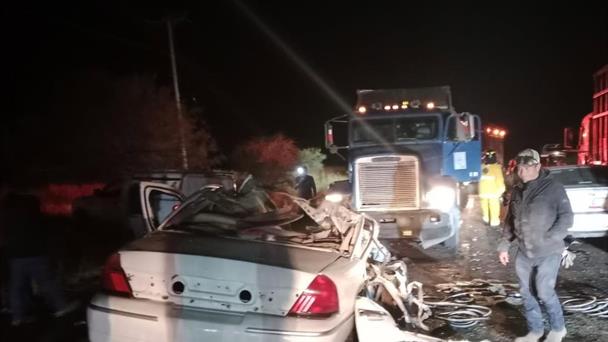 En el lugar también quedó un tractocamión abandonado, pesada unidad que fue proyectada por los dos vehículos; el más afectado fue el Ford, Gran Marquis, blanco.