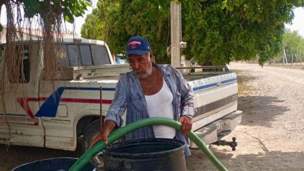 Con pipas abastecen de agua a familias del ejido San Francisco.