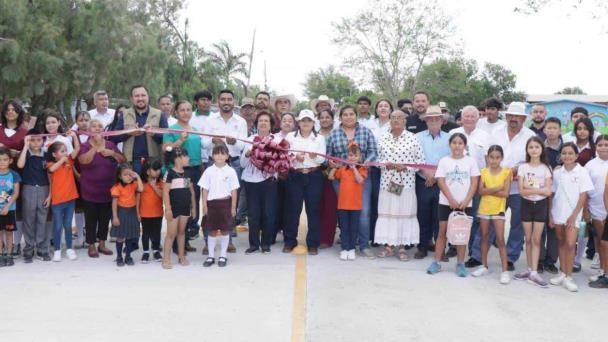 La presidenta municipal, Verónica Aguirre, acompañada de su equipo de colaboradores, realizó una gira de trabajo que inició en el ejido San Germán, donde cortó el listón inaugural de 130 metros lineales de concreto hidráulico que beneficia al jardín de niños “Leona Vicario”, la Unidad Médica Rural y a toda la comunidad.