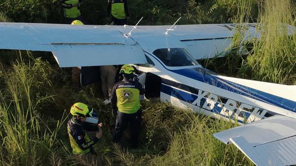 Los tripulantes recibieron atención médica después de que la aeronave quedó sobre la maleza.