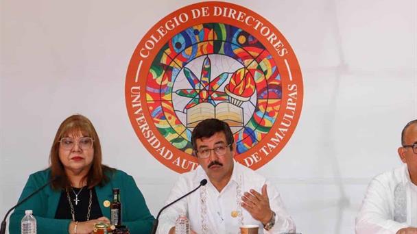 El rector de la Universidad Autónoma de Tamaulipas (UAT), Dámaso Anaya Alvarado, encabezó la 14.ª Reunión del Colegio de Directores, llevada a cabo en el Centro Universitario Sur (CUS), donde se reunió con titulares de las 27 dependencias académicas y funcionarios del gabinete de la Rectoría para revisar los avances institucionales y definir nuevas estrategias orientadas al fortalecimiento académico y administrativo de la casa de estudios.