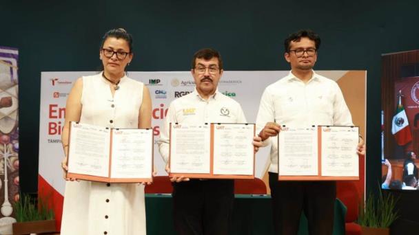 En el marco del Encuentro Nacional Biocombustibles y sus Mezclas 2025, que se realizó en el Campus Tampico de la Universidad Autónoma de Tamaulipas (UAT), el rector Dámaso Anaya Alvarado firmó un convenio de colaboración con la directora general del Instituto Mexicano del Petróleo, Elizabeth Mar Juárez, el cual permitirá a estudiantes y profesores colaborar en proyectos de innovación en materia energética.