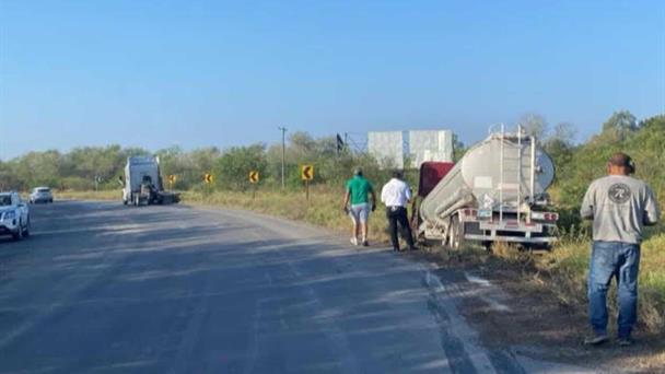 Un camión de transmigrantes que remolcaba una pipa y que se dirigía hacia Centroamérica, sufrió un aparatoso accidente ayer por la mañana en el kilómetro 73 con 120, a la altura de la primera curva rumbo al poblado Anáhuac.