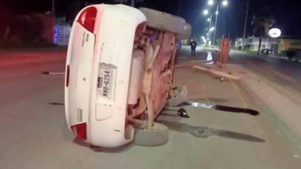 Valle Hermoso, Tam. - Un choque con volcadura se registró ayer por la madrugada en la carretera 120 salida norte de esta ciudad, justo en el kilómetro 80.500.