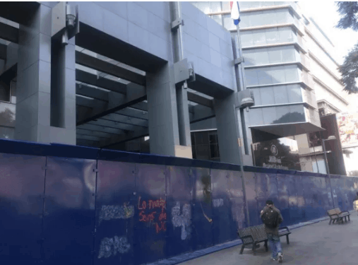 En cinco de Mayo, la representación del gobierno de Nuevo León, cuyo edificio fue vandalizado en la más reciente marcha de protesta, cubrió sus accesos de láminas de metal.