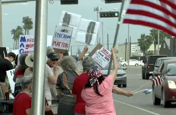 Cientos de miembros de la Coalición de Base del Sur de Texas denunciaron ayer por la tarde que la administración Trump está desmantelando las instituciones públicas de Estados Unidos, durante una manifestación celebrada en el Bicentennial Boulevard, en McAllen.