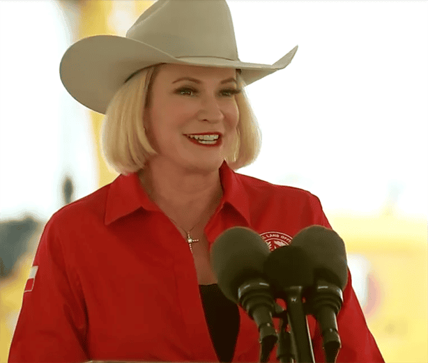En el marco de su visita, Dawn Buckingham, comisionada de tierras de Texas, anunció que el estado seguirá ofreciendo tierras a Donald Trump para la construcción de centros de detención que ayuden en la política de deportaciones masivas del republicano.