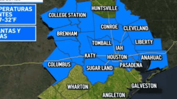 Una vigilancia de helada (Freeze Watch) se encuentra vigente para una porción del sureste de Texas, incluyendo el área metropolitana de Houston y condados aledaños, desde la noche del domingo hasta la mañana del lunes.