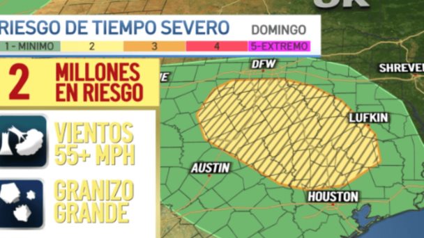Se esperan tormentas severas en el sureste de Texas con posibilidad de tornados aislados y granizo. Mantente informado.