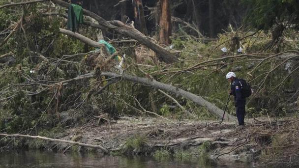 Equipos de búsqueda y rescate inspeccionan las cuencas del río Guadalupe después de una inundación repentina en la zona, el sábado 12 de julio de 2025, en Kerrville, Texas.