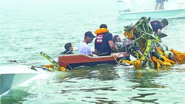 La aeronave Beech King Air 350i de doble turbohélice se estrelló el lunes por la tarde en una bahía cerca de la base del puente que conecta la Isla de Galveston con el continente. Los servicios de emergencia se apresuraron al lugar cerca del popular destino de playa a unos 80 kilómetros (unas 50 millas) al sureste de Houston.