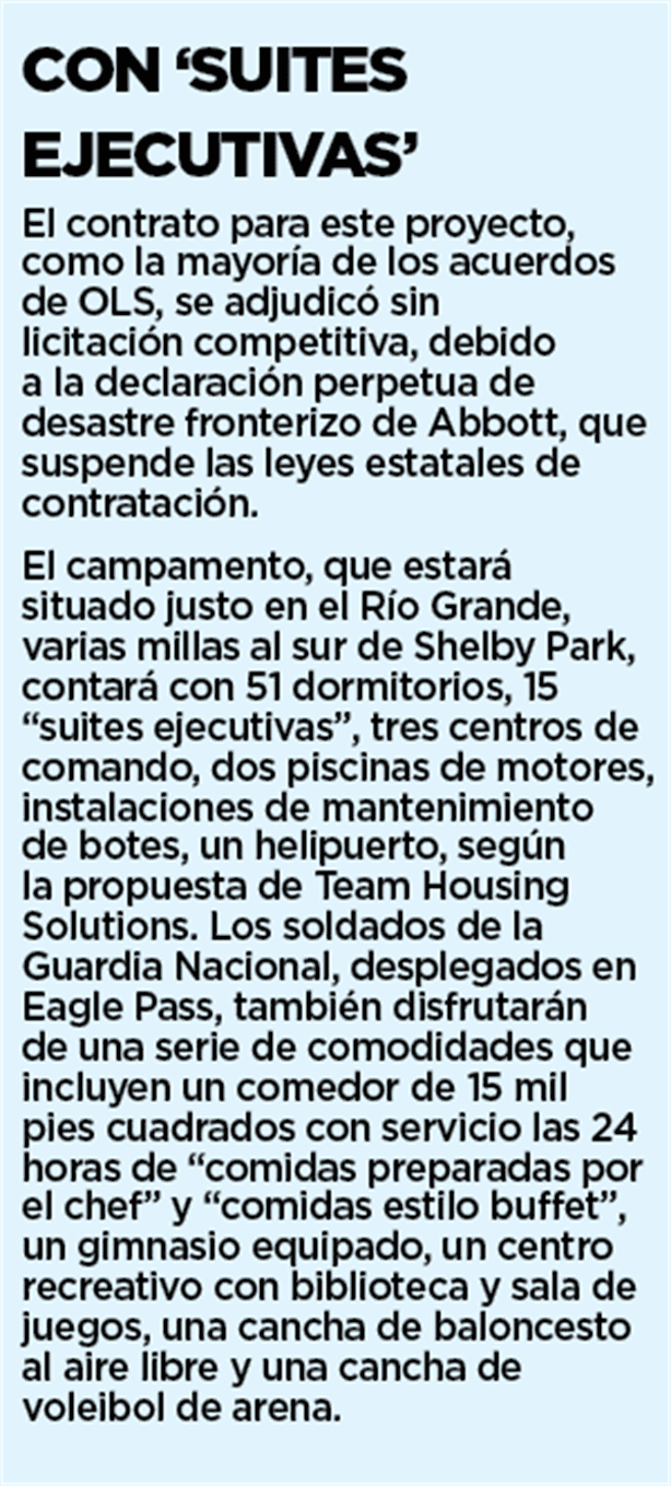 El ejército estatal ya tiene, al menos, otros dos campamentos base fronterizos en Del Río y Laredo. Team Housing Solutions también los construyó y opera.