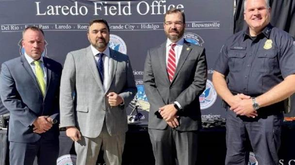 El agente especial interino a cargo de HSI, John Pasciuccio, el fiscal de los EE. UU., Distrito Sur de Texas, Nicholas Ganjei, el fiscal de los EE. UU., Distrito Oeste de Texas, Justin Simmons y el director de Operaciones de Campo, Donald Kusser.