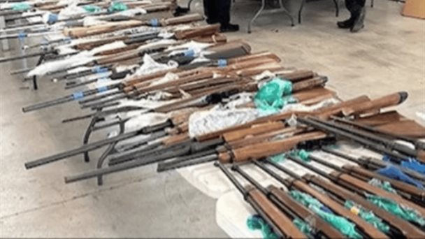 Más de 300 armas de fuego, miles de municiones y cargadores fueron asegurados tras la detención de padre e hijo.