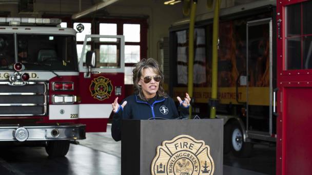 Monica Kelsey, fundadora de Safe Haven Baby Boxes, habla en el Departamento de Bomberos de Bowling Green, Kentucky.