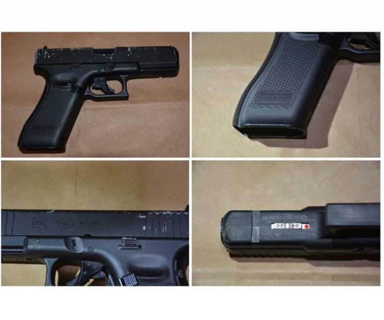 Esta combinación de imágenes, publicada por la policía de Utica, muestra una réplica de una pistola Glock 17 Gen 5, la cual fue recuperada después de que un agente matara de un disparo a un niño de 13 años que había sido derribado al suelo tras huir de la policía y apuntarles a los agentes con la réplica el viernes, 28 de junio, en Utica, Nueva York.