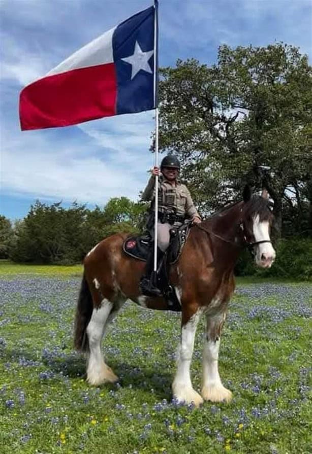 Se trata de la soldado April Galvan-Usher, de la Patrulla Montada de Austin, quien se lesionó recientemente durante un ejercicio de entrenamiento. Se cayó de su caballo y le fracturó la pelvis, por lo que requirió cirugía.