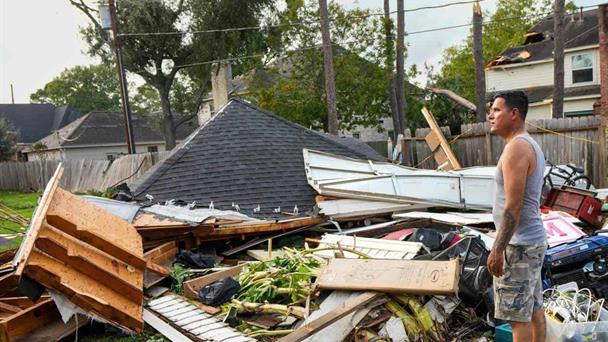 Fotos y videos de drones publicados en Facebook por la policía del condado Harris mostraron techos con tejas arrancadas. Algunos escombros bloqueaban las carreteras.