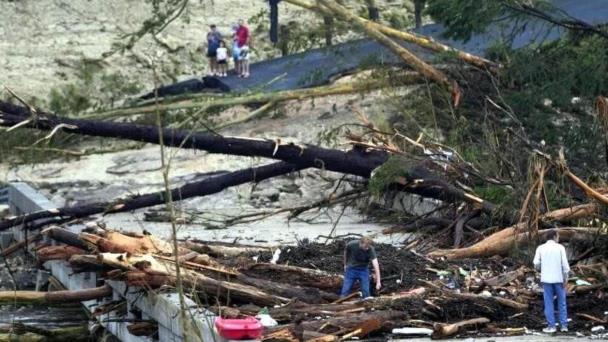 Describió una hora agonizante aferrándose a un árbol con su hijo adolescente y esperando a que el agua retrocediera lo suficiente como para subir la colina a un lugar seguro.