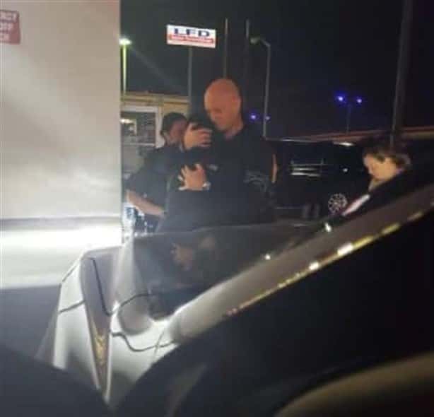 El jefe consuela con un abrazo a la esposa de Chris Luna.