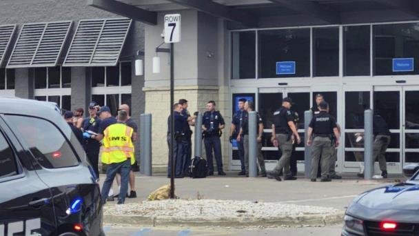 Agentes de policía fuera de un Walmart, el sábado 26 de julio de 2025, en Traverse City, Michigan.