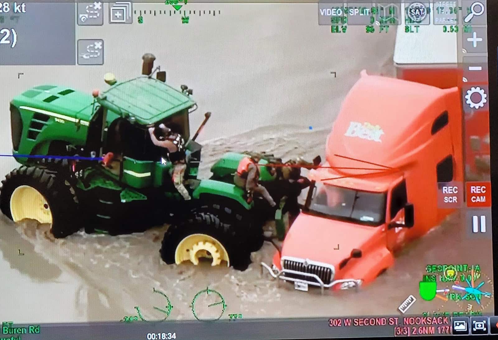 El incidente ocurrió mientras agentes de la Oficina de Operaciones Aéreas y Marítimas (AMO) de CBP estaban proporcionando apoyo aéreo para evaluar los extensos daños causados por las recientes inundaciones en la región. Desde el aire, los agentes divisaron un camión de grandes dimensiones atrapado e inmovilizado en medio de un torrente de agua creciente, poniendo en grave peligro al conductor.